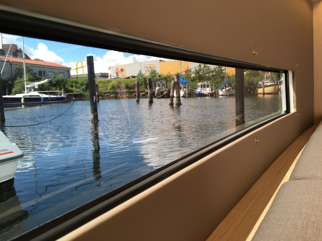 Der Clou sind die auf guter Höhe angebrachten Rumpffenster. Was für ein Ausblick! Ich könnte die ganze Zeit hier sitzen. Hell und freundlich wird es darüber hinaus.