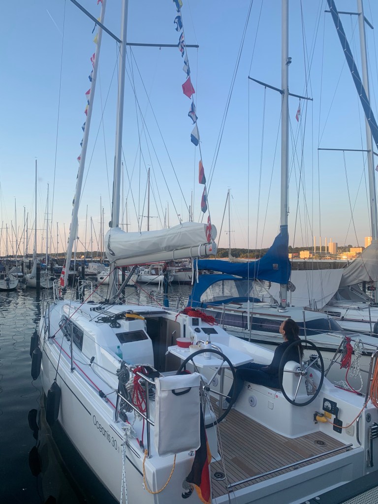 Da wir aufgrund der Corona Pandemie keine Taufparty veranstalten durften und wollten, haben nur Jutta und ich das neue Schiff in seinem Heimathafen Kiel-Düsternbrook getauft.