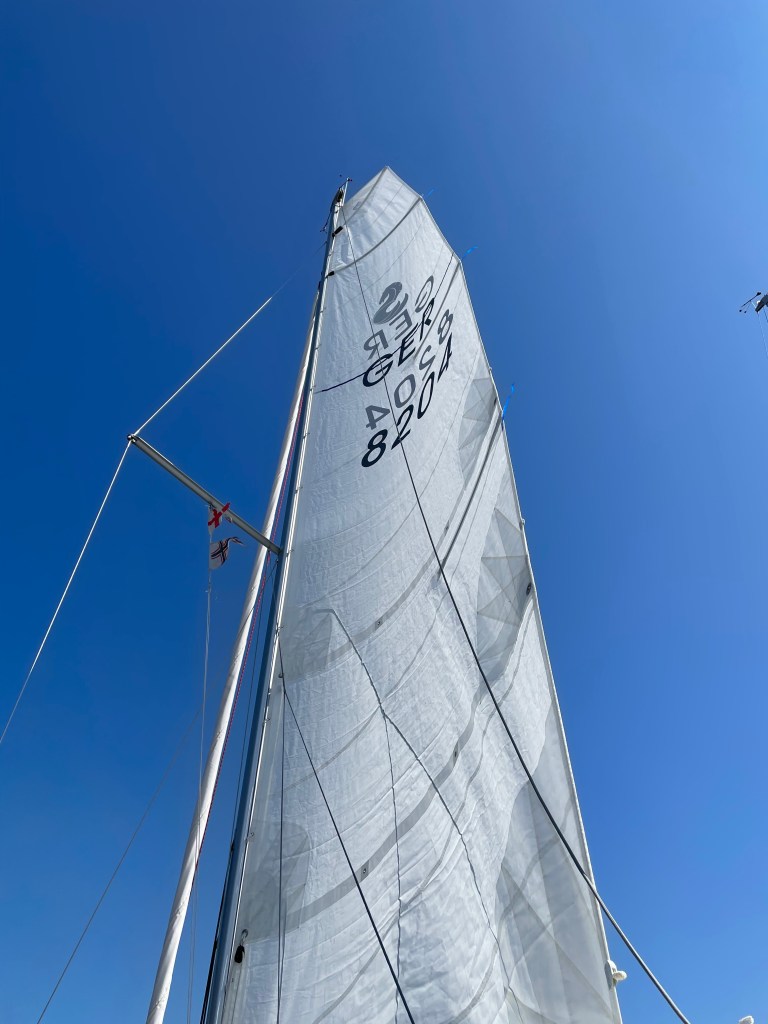 Dazu musste ich die Rumpfabmessungen, Zeichnungen und Fotos beim DSV einschicken und die Segel von einem Segelmacher vermessen lassen. Dessen Daten mussten dann auch an den DSV gesandt werden. Der GPH ist 738,9. Zumindest an der Kreuz müsste man damit arbeiten können.