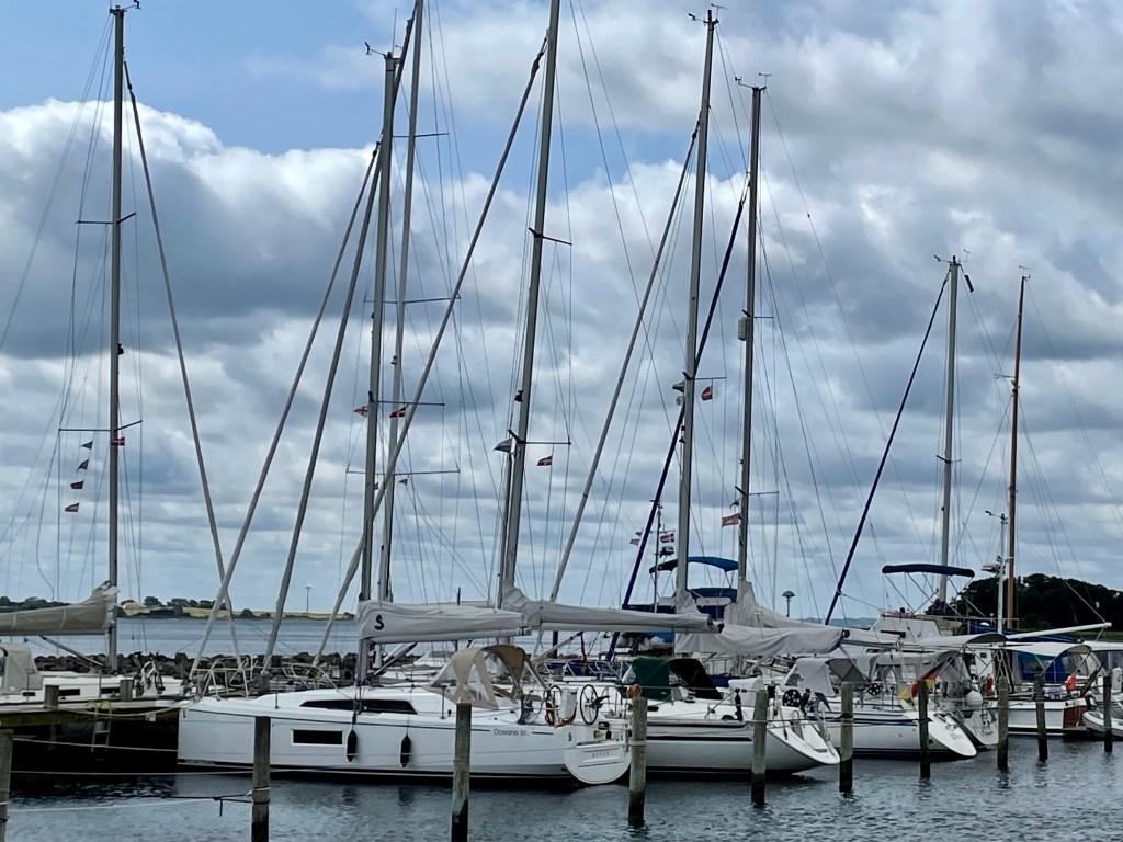 Allerdings war ich mit meinen 30 Fuß in diesem Hafen auch bei weitem das kleinste Boot. Viele deutsche Stammlieger scheinen in Hoeruphav ihre Yacht im Sommer liegen zu haben und unter 39 Fuß geht da offensichtlich gar nichts. Nur das Schiff eines Paares aus Laboe mit seiner Halberg-Rassy 312, die wir bereits in Kappeln getroffen hatten (Danke für die Hilfe beim Anlegen mit seitlichem Strom) war in einer vergleichbaren Größe.
