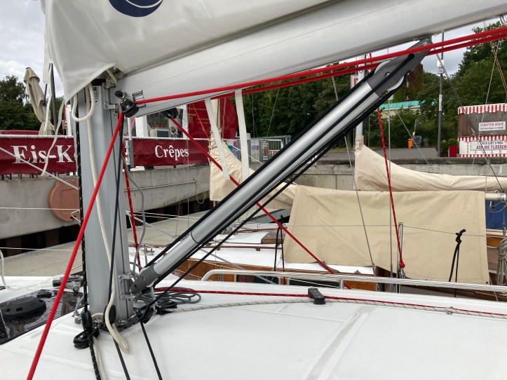 Herr Münker vom Segelmacher Faber & Münker in Kiel hat sich vor Ort bei mir auf dem Schiff einen Eindruck gemacht. Die Segelmacherei ist offizieller Händler von Z-Spars. Er meint, dass ein 6 mm Bolzen nicht ausreichend dimensioniert ist. Das sehe ich auch so! Um aber erst einmal die Aalregatta mitsegeln zu können hat Herr Münker den alten Beschlag repariert. Danach bekam ich eine SMS mit diesem Bild.
