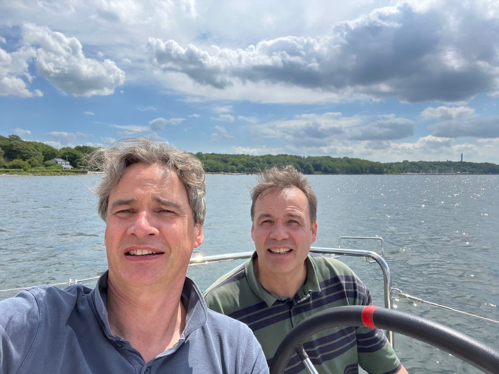 Bei bestem Wetter verlegen wir das Schiff von der Innenförde raus nach Schilksee. Wenn der West-Wind so bleibt, schiebt er uns einmal um Ærø rum. Das wäre super, obwohl dann wieder einmal alle mit Gennaker einen Vorteil hätten.