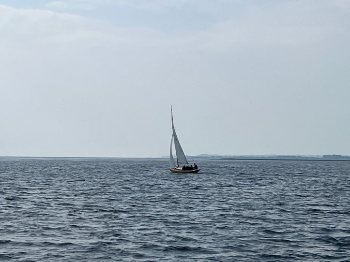 Hier in der Dänischen Südsee sind Folkeboote klar im Vorteil. Sie laufen super Höhe, haben nur 1.20 m Tiefgang und sind supersteif. Sie sind halt für dieses Seegebiet gedacht.