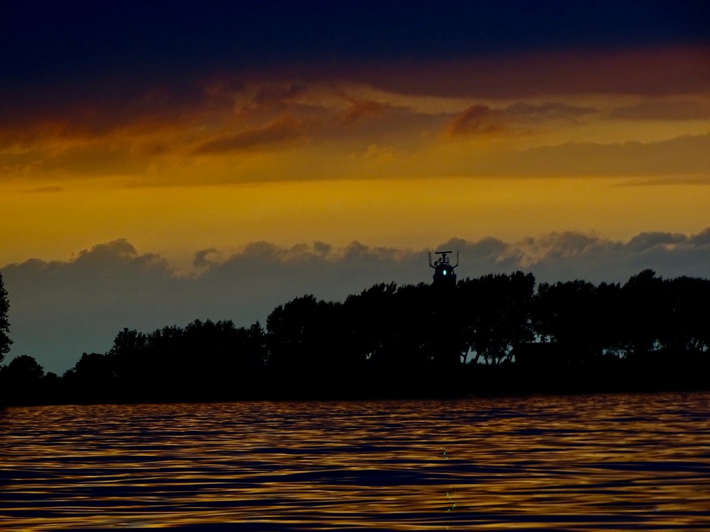 Leider fing es kurz nach dem Start um 21.00 Uhr und einem atemberaubenden Sonnenuntergang vor dem Leuchtturm Bülk, an zu regnen. Schiff und Klamotten waren dann leider nass, als wir in die Dunkelheit fuhren.